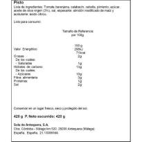 Tomaten, Auberginen, Zucchini, Zwiebeln, Pintón-Pfeffer, Zucker, natives Olivenöl extra (2,5 %), Salz, Verdickungsmittel: modifizierte Maisstärke, Säuerungsmittel: Zitronensäure.