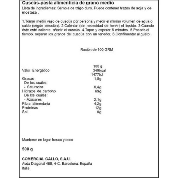 Mittelgroßer Couscous, GALLO 500 g