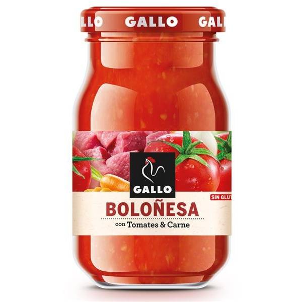 Tomatenmark und Tomatenkonzentrat (43%), Wasser, Schweinefleisch und Rindfleisch (16%), Karotten (7%), Zwiebeln (5%), Sonnenblumenöl, Salz, Zucker, modifizierte Maisstärke, Schweinebauch (1%), Aroma, Säurekorrektor: Milchsäure, aromatische Pflanzen und Gewürze. Ohne Gluten.