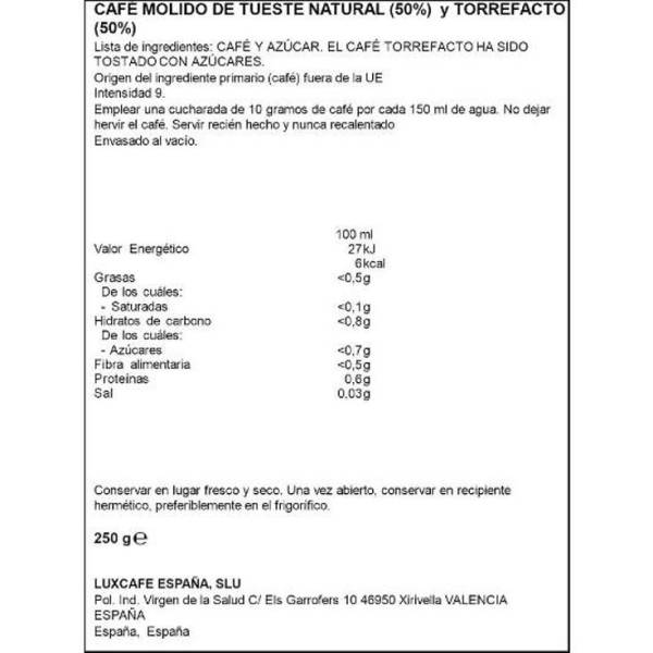Café molido mezcla, 50% torrefacto y 50% molido natural. Un café que puedes usar en cafeteras tradicionales.