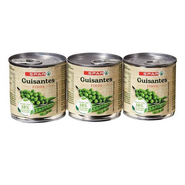 Compra estos guisantes extraordinarios de la marca Spar, pack de 3 latas, y prepara tus mejores guisos. Es un producto ideal para acompañar un buen pescado o filete de pollo.