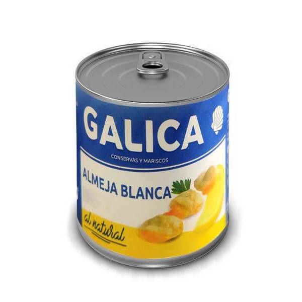 Almeja blanca (moluscos), agua, sal, acidulantes (E330, E331) y antioxidante (E385).