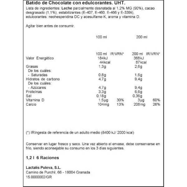 Leche Desnatada con Chocolate Proteína Extra...