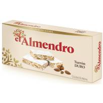 El turrón duro EL ALMENDRO está elaborado con un altísimo porcentaje de almendra tostada, el resultado de la mezcla de una exquisita almendra con el caramelo (miel y azúcar) al que se le añade clara de huevo (consiguiendo así el color blanco que tanto le caracteriza) ofrece como resultado este turrón de Calidad Suprema. El turrón duro es un clásico de los dulces de navidad españoles.