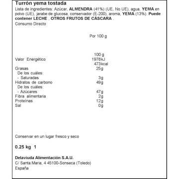 Producido por La Confitería Delaviuda, es la perfecta combinación de almendras y fruta confitada de alta calidad. Con una tradición familiar centenaria, DELAVIUDA es sinónimo de calidad en dulces navideños. Elaborado de manera artesanal, cada bocado es una obra maestra. En YourSpanishCorner, ofrecemos la oportunidad de comprar este exquisito turrón y otros productos de alta calidad a precios competitivos. Descubre la magia de la Navidad y haz tu pedido para disfrutar de esta deliciosa tradición.