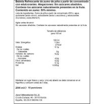 Especificaciones: bebida de zumo de piña a partir de concentrado con edulcorantes. Sin azúcares añadidos. Contiene los azúcares naturalmente presentes en la fruta. Contenido en zumo: 50% mínimo.