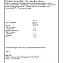 Semoule de maïs, huile de tournesol riche en acide oléique (26,5%), huile de tournesol (9%), arôme de fromage [arôme (contient du lait), exhausteur de goût (glutomate monosodique) et colorant (extrait de paprika)], sel et émulsifiant (E-471).