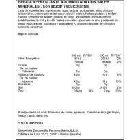 Eau, sucre, correcteurs d'acidité: acide citrique et citrate de sodium, sels minéraux: chlorure de sodium, phosphate de potassium et phosphate de calcium, acide ascorbique antioxydant et stabilisants: E-414 et E-445, arômes et mélange de colorants de carotènes.