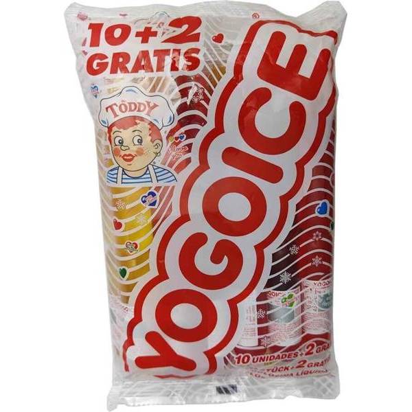 Eau, sucre ; lait en poudre, émulsifiants (E-466, E-412), acidulant (E-330), arôme artificiel, jus de fruits concentré, colorants (E-102, E-129, E-133).